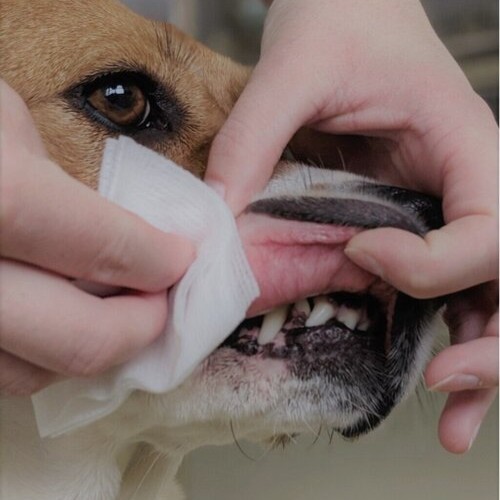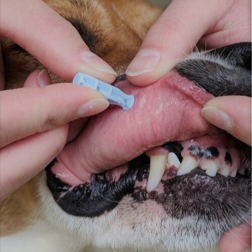 First, pull back your pet’s upper lip and wipe away saliva. Saliva can interfere with blood glucose results, so its important to make sure the lip is dry prior to obtaining your blood sample.